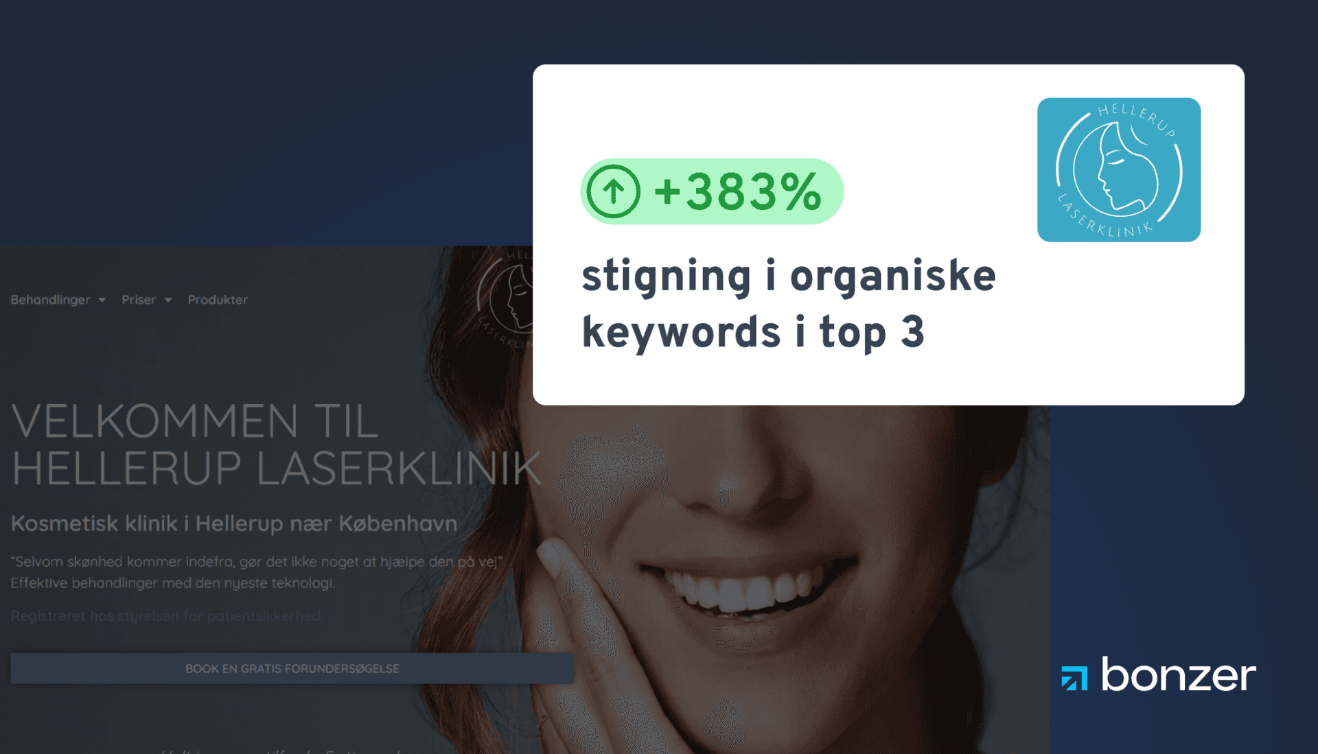 383% flere keywords i top 3 på kun et år: Se SEO-strategien vi udarbejdede for Hellerup Laserklinik